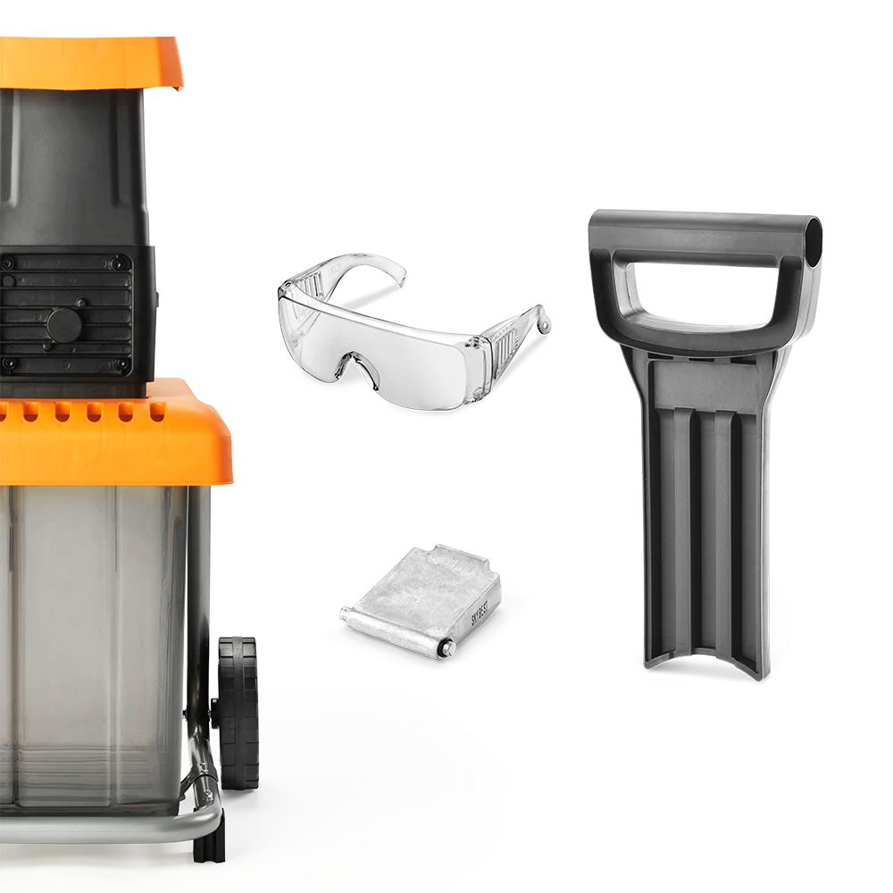 Comes with a feeding stick to help push leafy material into the shredder and keep hands safely out of the hopper and cutting drum. Jams can easily be cleared using the reverse setting or by opening up the hopper with the hex key provided. Overload cut out protects the motor from overheating.